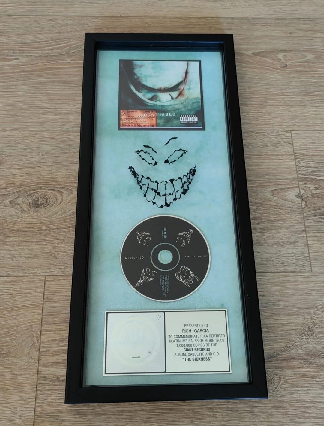 Just received this small, but nice looking Disturbed Platinum record award for their debut album “The Sickness”. There’s also a bigger version of this award out there, maybe in the future I’ll have the chance to purchase that version also.